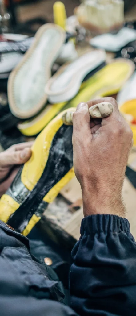 Komitmen kami terhadap kualitas mencakup pemilihan bahan hingga pengerjaan tangan yang teliti pada setiap pasang sepatu.